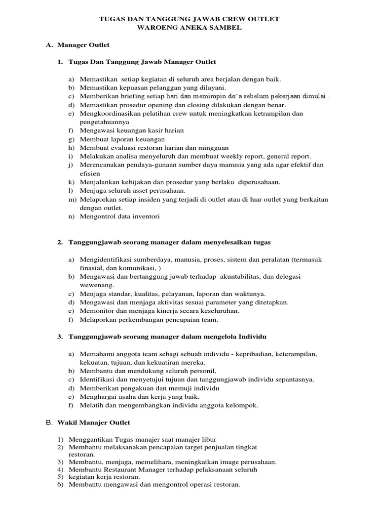 Memangnya, apa alasan kamu memilih untuk bekerja sebagai food and beverage outlet manager? Apa itu id outlet ? Id outlet akan memudahkan transaksi data atau informasi pribadi kamu ketika melakukan aktivasi kartu perdana. Apa itu sea salt spray ? Tugas hrd staff di perusahaan | di dalam sebuah perusahaan sudah pasti akan ada pegawai yang memiliki jabatan sebagai hrd staff.